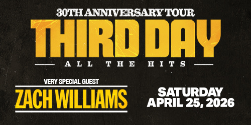 “Celebrating 30 years of THIRD DAY is a true honor, and bringing Mac, Mark, David & Tai back to the stage is something fans have been waiting for,” said Dan Fife, CEO of Awakening Events. “Adding Zach Williams as a very special guest makes this tour even more powerful. This is going to be a once-in-a-lifetime night of live music and celebration for all generations to experience.”