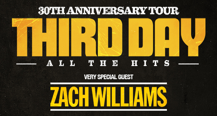 Experience the iconic band that shaped Christian music — Third Day — as they reunite for their 30th Anniversary Tour. For the first time in over a decade, original members Mac Powell, Mark Lee, David Carr, and Tai Anderson will hit the stage together for a limited number of live shows across the U.S. Celebrating three decades of unforgettable hits, this once-in-a-lifetime tour will feature the band’s classic songs, pulling from their legendary catalog of chart-topping singles. Special guest Zach Williams will join the tour, adding his soulful hits to the night.